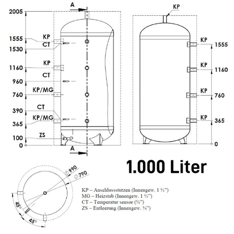 Cartouche de chauffage, tige de chauffage 230V 1¼ "AG 1,5 kW - 230V PV