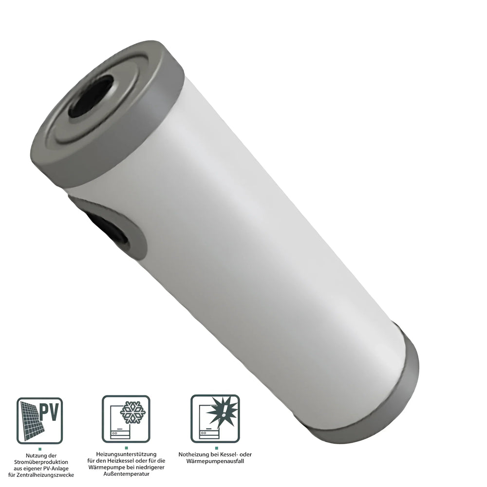 This innovative post-heating module offers a flexible solution for water heating in central heating systems. It is specifically designed for use in combination with photovoltaic systems, heat pumps, boilers, and other heating systems. The device supports operation by converting excess electricity into heat, thus making a sustainable contribution to energy optimization.