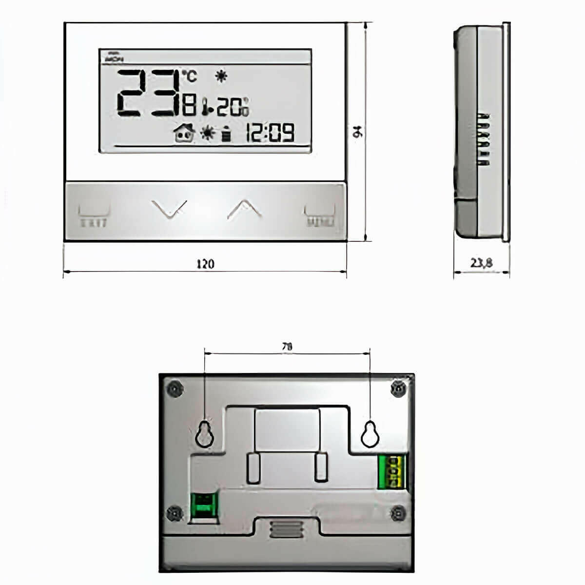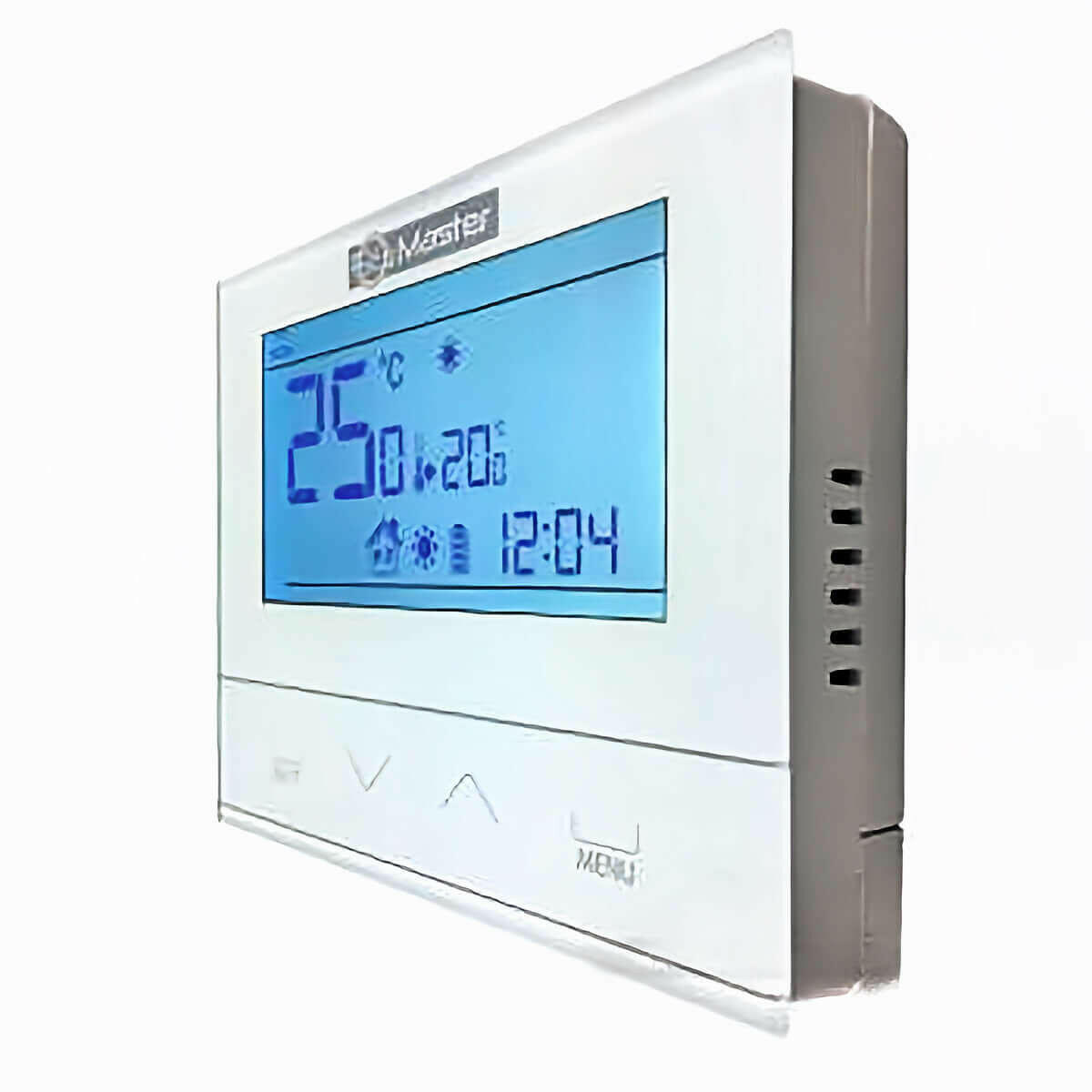 The Master R.23 room controller offers you a convenient and efficient solution for controlling your heating appliances. With its integrated weekly control, stylish design, and user-friendly operation, this thermostat is ideal for use in residential or commercial spaces. Wall mounting is quick and easy thanks to its surface-mounted design.