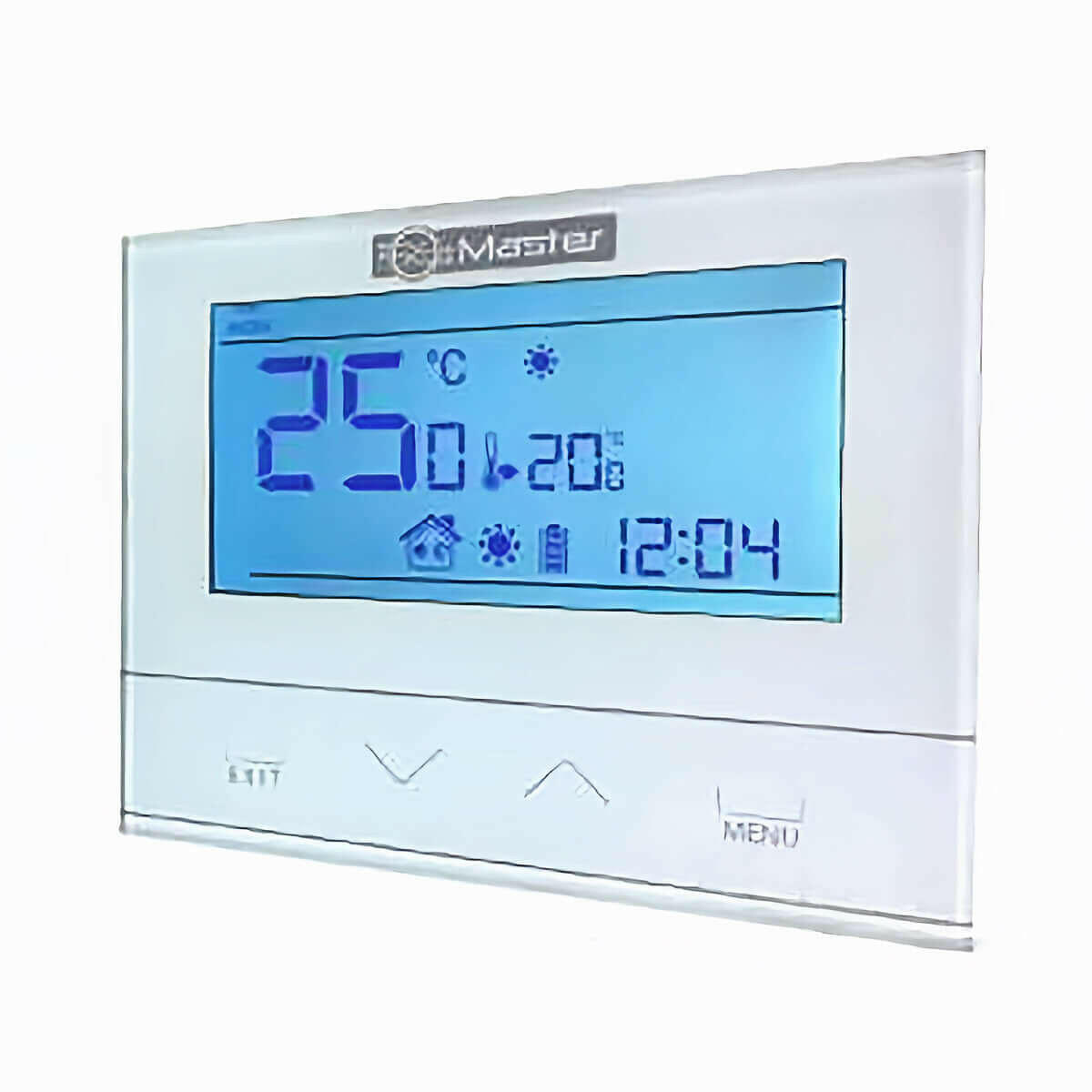 The thermostat impresses with its high-quality appearance: The front panel is made of 3 mm thick glass, which not only looks modern but is also particularly robust. The 3.6-inch backlit LCD display ensures easy readability, even in low-light conditions. The touch buttons complement the elegant design while offering intuitive operation.
