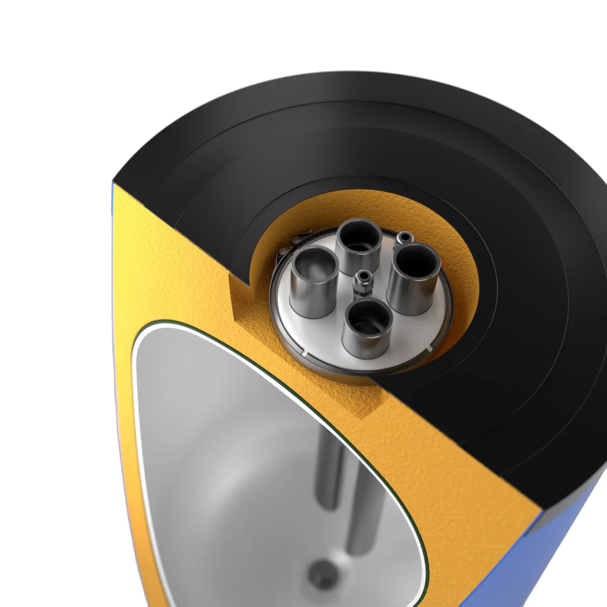 Con un volumen de 200 litros y un peso de tan solo 33 kg, el Sunex FISH Carbon S4 ofrece una relación capacidad-capacidad inigualable. La disposición centralizada de todas las conexiones en la parte superior permite una conexión flexible a una amplia variedad de sistemas de calefacción sin desperdiciar espacio.