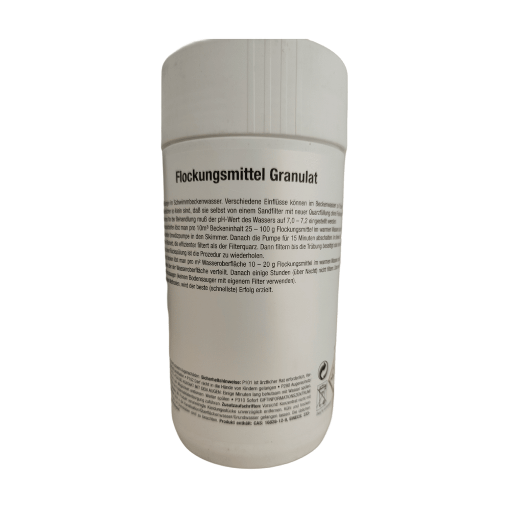 Apstrādei spainī sajauciet 40–80 ml flokulanta uz 10 m³ ūdens. Pēc tam vienmērīgi uzklājiet šķīdumu visā baseinā un pārliecinieties, ka tas ir rūpīgi sajaukts. Lai veicinātu flokulāciju, izslēdziet filtrācijas sistēmu uz nakti, lai suspendētās daļiņas varētu nosēsties. Visbeidzot, noņemiet suspendētās daļiņas ar putekļsūcēju un rūpīgi izskalojiet filtru.