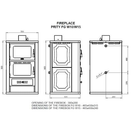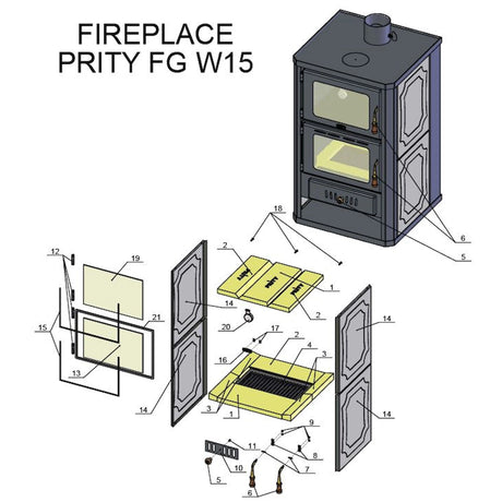Piec wodny opalany drewnem z komorą pieczenia Prity FGW15 - 19,8 kW