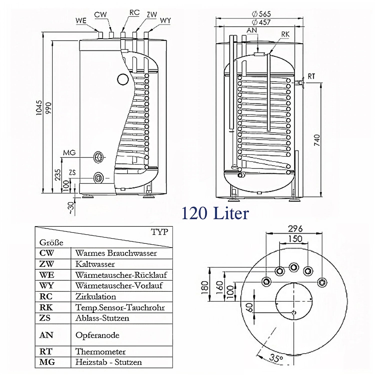 Cel/Cea/Cei/Cele Rezervor de apă caldă 100 l, 120 l sau 150 l cu 1 schimbător de căldură este utilizat pentru încălzirea centrală și sigură a apei calde.