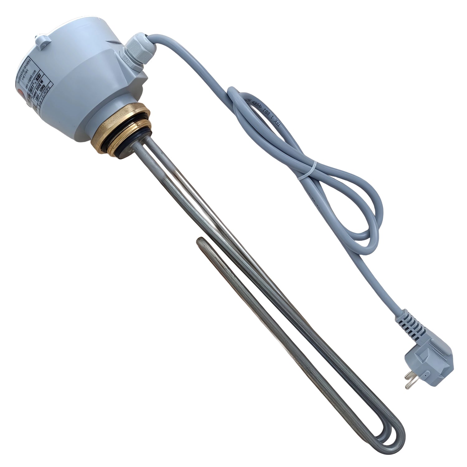 Grelni element je zasnovan za vodoravno montažo in je priključen preko navojnega priključka 1 1/2".2" AG sestavlja. Dobava z vtičem Schuko omogoča enostaven zagon brez orodja; vendar priporočamo, da namestitev izvede usposobljena oseba, da se zagotovi tesnost in varna električna povezava.