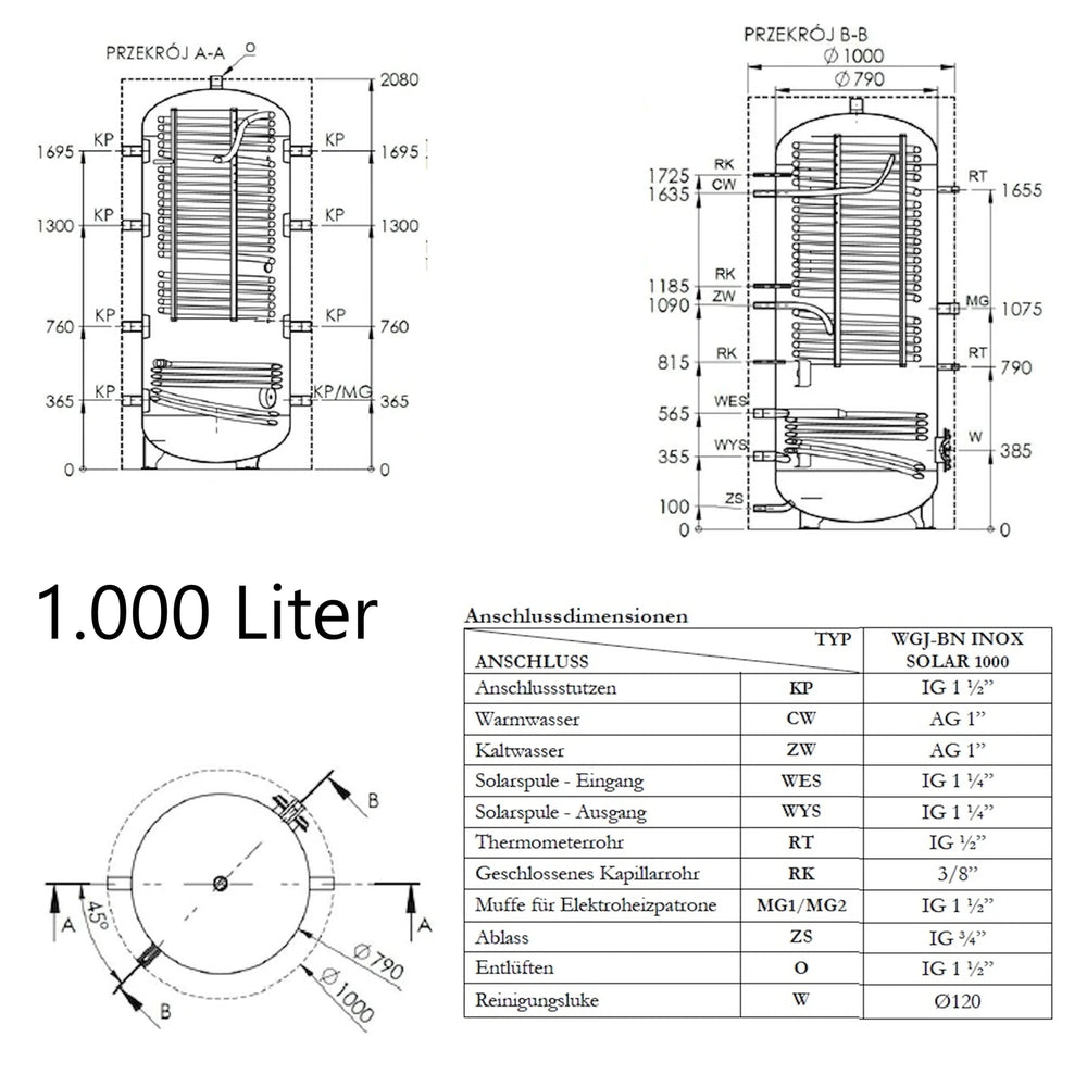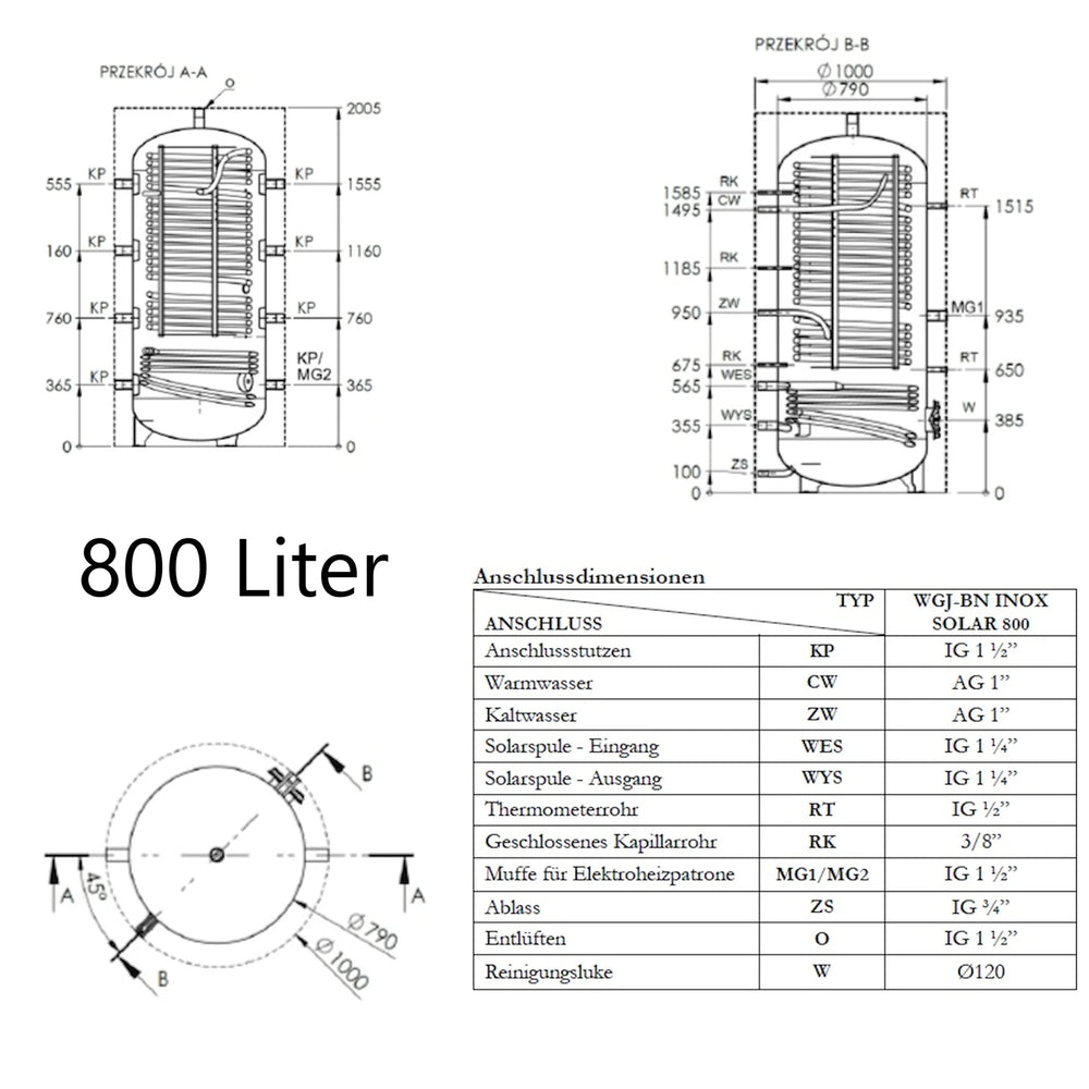 WGJ-BN INOX SOLAR je kombinirani zalogovnik za ogrevanje vode in sanitarne tople vode z integrirano grelno spiralo iz nerjavečega jekla kot toplotnim izmenjevalnikom. Zasnovan je bil za integracijo v sisteme centralnega ogrevanja s kotli, toplotnimi črpalkami ali za uporabo sončne toplote in omogoča tako shranjevanje ogrevalne energije kot tudi neprekinjeno ogrevanje pitne vode.