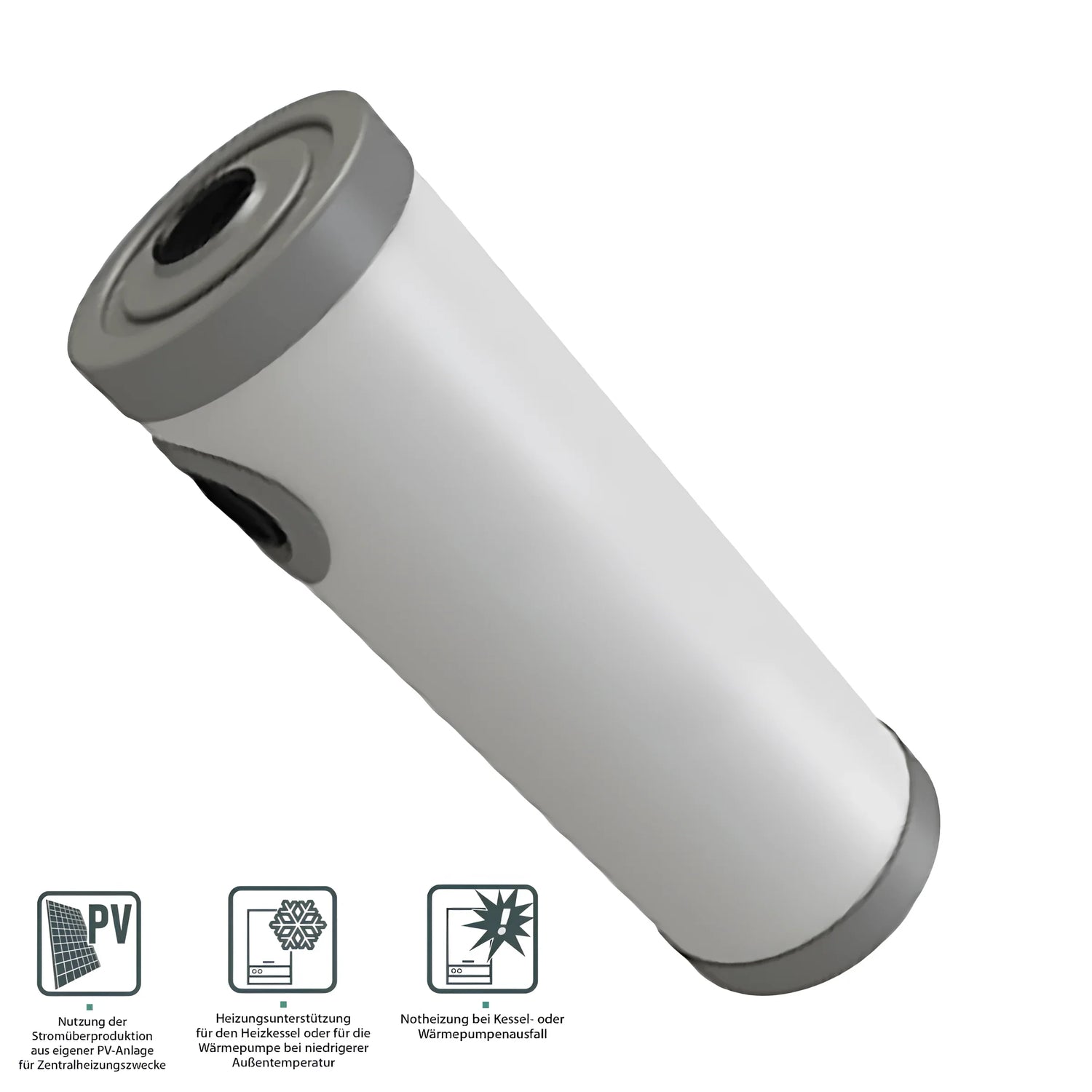 Den enkla integrationen av värmepatronen i befintliga lagringstankar möjliggörs av 1 1/2" Utvändig gänganslutning och en kompakt installationslängd på 735 mm stöds. En 1,5 meter lång anslutningskabel möjliggör också okomplicerad strömförsörjning.